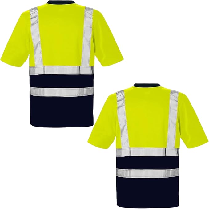 Pack of 2 Hi Vis Safety T-Shirt for Men – High Visibility Short Sleeve Work Shirt with Reflective Tape – Lightweight, Breathable Workwear – Yellow/Orange/Navy, S-3XL